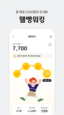· 웰뱅워킹: 걸으면 걸을수록 커지는 건강과 혜택, 대출 고객님이라면 월 최대 3,000원의 즐거움을 받아보세요.