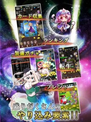 ボスカード収集、ランキング、装備ガチャ、フレンド