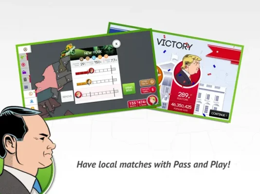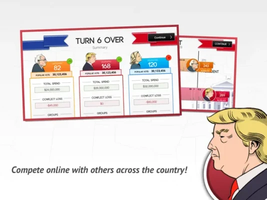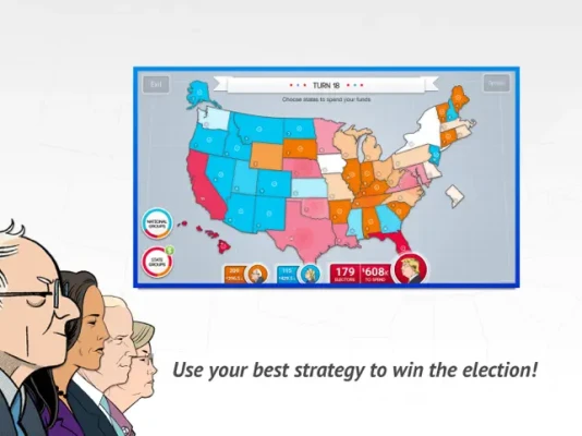 So battle it out on the road to the White House by running against political opponents in key states, winning over interest groups and accumulating Electoral Votes to become President!
