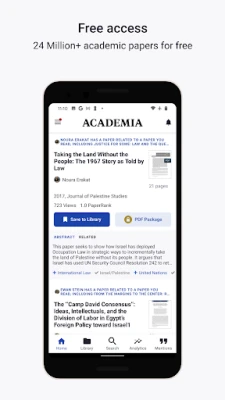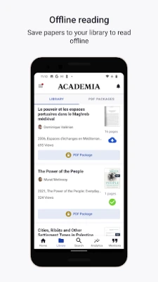 Use the app to: - Discover and read new research - Save papers in Library and read them later in-app or on desktop - See who is reading your papers and profiles - Search for scholarly research on thousands of topics - Find and connect with like-minded scholars - See what friends and colleagues are working on