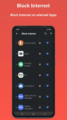 • Block internet access to specific apps that you suspect of data theft or have offline use only.