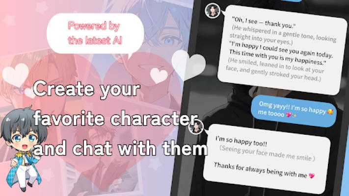 Whether it’s characters from anime, manga, or games — or original characters you invent yourself — you can define personality, tone, worldview, and even the relationship between you and the character. The result is natural, deep, and emotionally resonant conversation that feels alive.