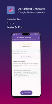 🤖 AI-Powered Hashtags: Instantly generate relevant, trending, and niche-based hashtags using artificial intelligence.