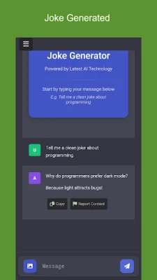 Bring laughter into your life with AI Joke Generator, your go-to app for creating side-splitting jokes in just seconds! Powered by the latest AI technology, this app delivers a wide variety of jokes tailored to your sense of humor. Whether you're looking for clean jokes, pun-filled one-liners, or hilarious roasts, AI Joke Generator has you covered.