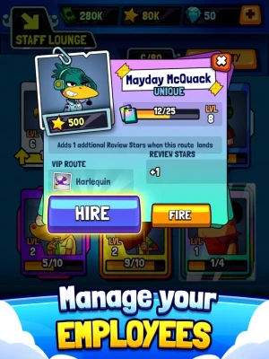 Automate your airport to generate even more cash with freshly hired Staff. Collect and level up quirky workers for your airport including Pilots, Services, Flight Crew and more!