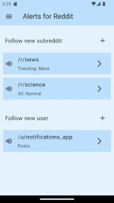 - Add/remove subreddits or users at any time to start/stop seeing notifications