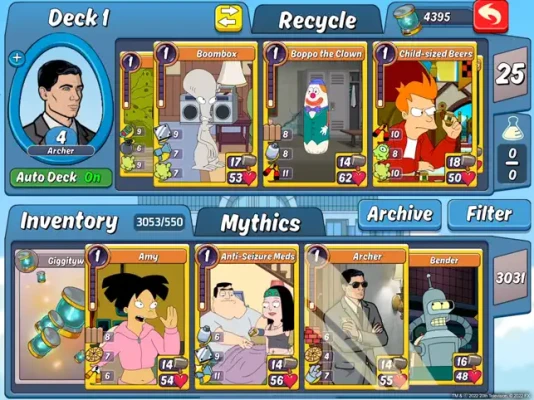 PVP battles let you duel other players in strategic head-to-head card battles. Enter epic card wars with Bob, Linda, Tina, Louise or Gene and fight Peter or Stewie Griffin! Battle, build and upgrade your deck for a cartoon card clash.