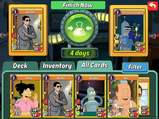 STEWIE, BENDER, LANA, PAM, TINA BELCHER, HANK HILL & ROGER THE ALIEN are waiting for you in this epic CCG! Come battle your way to the top in PVP duels!