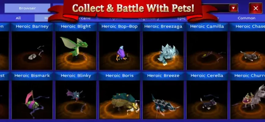 - Collect and grow mystical pets to aid you in battle
