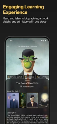 • Audio and Written Art Descriptions - Access comprehensive biographies, artwork details, and art history in one place. Many descriptions are available in audio format, allowing you to listen, read, and immerse yourself in the art world’s rich history anytime.