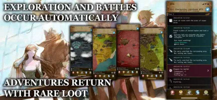 Exploration and battles occur automatically, and characters return after a set time. Watch events unfold in real-time, or see how your party fared afterward. Did your brave adventurers return with rare loot, or did the dungeon’s perils get the better of them?