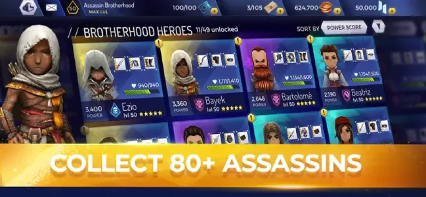 • Train and promote your assassins to the highest ranks to strengthen your Brotherhood forces and defeat the Templars.