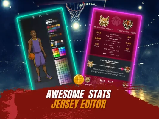 Astonishing Basketball features a simulated but living world. Fans are posting about the game and your brand new rookie. Players send you messages about their concerns or their contract. Or you might have to improvise what's for dinner when the team cook gets sick! And thanks to the brand new "Rivalry", discover the terrifying Regina Dargor. Nothing will stop her from crushing you and your team!