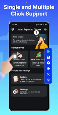 This clicker app gives you full control with easy setup, smooth execution, and an intuitive interface. Set up auto tap sequences with custom delays, repeat counts, and durations. Choose between single tap, multi point, gesture, or multi touch mode. The auto click and tap auto features make your screen interactions fully automated!