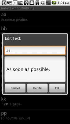 This is not a standalone app. It is a plugin to provide Autotext / shorthand and Next word Prediction functionality for Multiling O Keyboard.