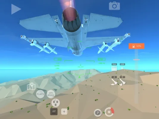 - Features instruments such as: Artificial horizon, altimeter, airspeed, in-flight map, heading, Vertical Speed Indicator, Engine RPM/N1, fuel, G-force gauge, Head-Up Display etc.