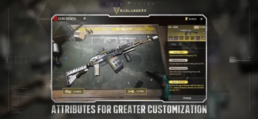Badlanders offers a wide array of attachments, items, accessories, camouflages, and attributes for a personalized combat experience!