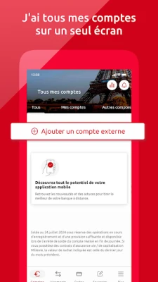 - Visualisez tous vos comptes, même ceux d’autres établissements bancaires sur un seul écran pour avoir une vue d’ensemble de vos finances avec le nouveau service d’agrégation de comptes.