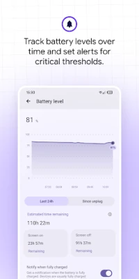 - Set battery full charge alarm, low battery level, or high temperature notification.