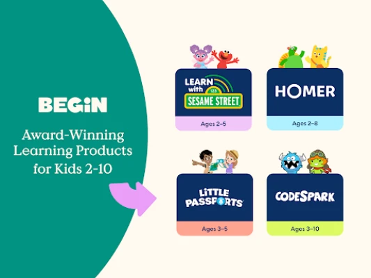 Tap into the power of digital play with a free, curated selection of Begin's award-winning learning games. Designed for learners of all ages, there's something for everyone to explore, like early reading, math, social-emotional skills, STEM, coding, and more. Unlock 10+ exclusive games from Learn with Sesame Street by Begin, HOMER, codeSpark, and Little Passports and enjoy skill-building screen time you and your child can feel good about.