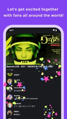 ▷ Real-time Chat. You can send messages to artists during the performance or communicate with fans. Use a Beyond LIVE sticker to send a message to the artist!