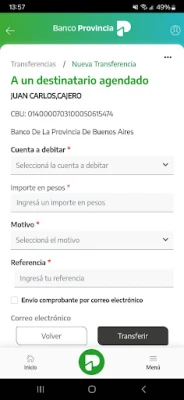 Unload the app in your Mobile and enter using your Banca Internet Provincia username and password. The first time, the system will ask you to accept Terms and Conditions.