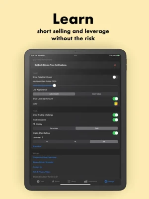 The game that teaches you to trade Bitcoin! Practice trading on Bitcoin Simulator before you risk your hard earned money! Trade with real-time market data and compete in trading challenges. Short sell Bitcoin to make money when the price goes down. Use Leverage to supercharge your gains.