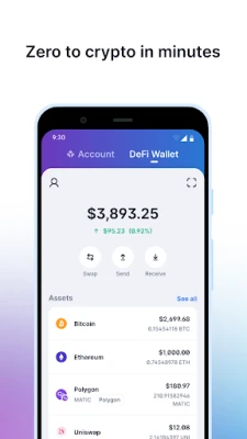 Self-custody your crypto across Bitcoin, Ethereum, Polygon, and other leading blockchains, with the DeFi Wallet.