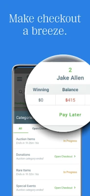 • Empower your fundraising team: From registering guests and processing donations to managing auction bids and ticket sales, everything you need is on your mobile device. Real-time transaction tracking keeps you informed throughout the event, while the self-service kiosk makes it easy for attendees to participate and give effortlessly.
