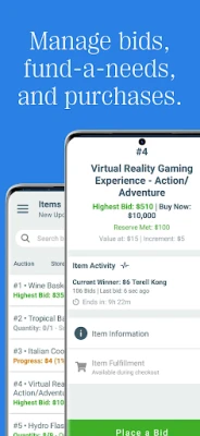 • Real-time event tasks at your fingertips: Instantly register attendees, process check-ins and credit card donations, track donor activity, sell items like raffle or drink tickets, and manage auctions with ease. Boost engagement through fund-a-need appeals, and stay on top of goals with real-time reporting.