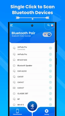 Bluetooth pair finder scanner app is used to help the functions of locating any Bluetooth devices. Bluetooth scanner Pair Finder app helps out you to easily connect to the mostly used devices, without time wasting on