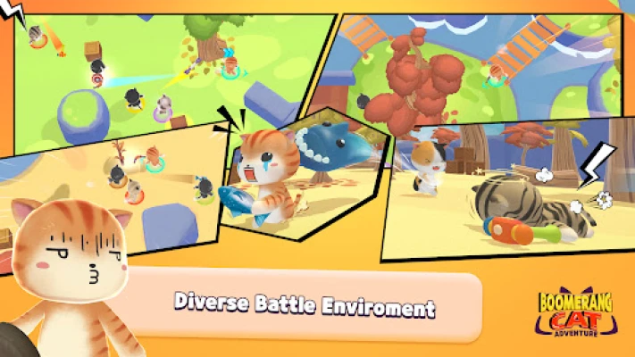 Step into the world of ""Boomerang Cat Adventure"" where the thrill of boomerang combat comes to life! Armed with just one stick and three buttons, you can engage in epic battles against friends and AI opponents. Easy to pick up, yet challenging to master, you’ll learn advanced techniques to deflect attacks, recall boomerangs, and curve throws around corners.