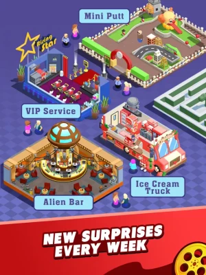 • Build Concessions, Arcades, Karaoke, Theaters, Ticket Booths and more in this simulation game!
