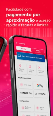 - Carteira digital pra cadastrar seus cartões Bradesco e fazer pagamentos de forma prática e segura