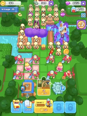 ◾If I had a hammer… The game has a second currency that can also be won in combat and earned from chests. In conjunction with collectible building cards, hammers allow you to upgrade buildings and further increase your earnings.
