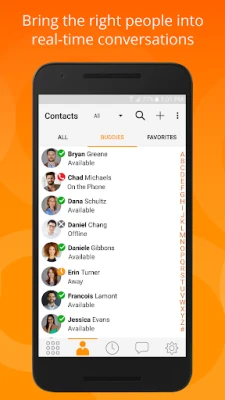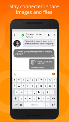 Stay connected wherever you go, leveraging your call server or VoIP service. Includes HD audio and video support, along with XMPP & SIP SIMPLE support.