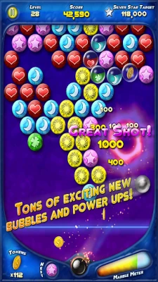 The game is easy to play - shoot bubbles, clear the marbles and bust the hidden key bubble - yet amazingly fun and challenging!