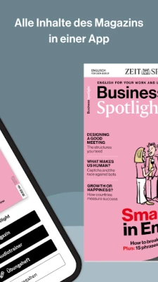 Einfach besser Business-Englisch lesen, hören, üben – mit der Business Spotlight-App. Business Spotlight bietet mit Interviews, Kolumnen und Reportagen einen spannenden und aktuellen Einblick in die englischsprachige Business-Welt. Darüber hinaus finden Sie in der App den Audiotrainer und das Übungsheft von Business Spotlight.