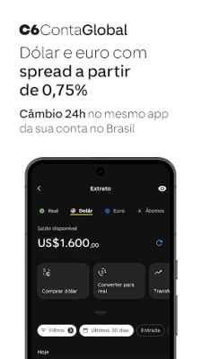 Baixe o app do C6 Bank e abra sua conta digital em real, dólar ou euro em minutos. Cartão de crédito (sujeito a análise), pontos que não expiram, uma das menores taxas de câmbio do mercado e mais.