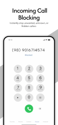 Easily block incoming calls using blacklisting and custom rules. You can blacklist phone numbers, block incoming calls by number, and stop calls from unknown or private numbers. The spam call blocker lets you block scam calls, fake numbers, robocalls, and marketing calls before they disturb you.
