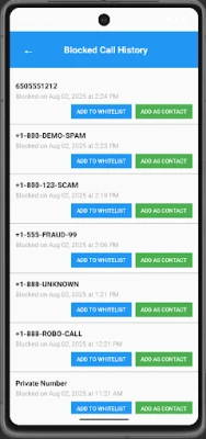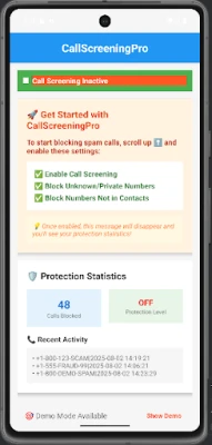 CallScreeningPro gives you total control over who can call you — by default, it blocks every number not in your contacts. No more robocalls, spam, or strangers interrupting your day.