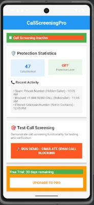 Try CallScreeningPro completely free for 30 days — no subscription required to start. See the difference for yourself. After the trial if you are happy with