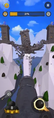 Aim, Fire, and Watch the destruction! Real physics based demolition of medieval castles. Earn coins, upgrade your cannon and cause more destruction.Are you ready?