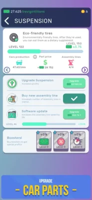 Build your empire tycoon, collect idle cash and hire new workers. You can build many types of car parts by upgrading machines in your car factory. Upgrade parking to get more workers and expand your car business.