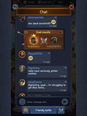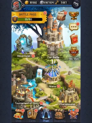 CLAN. You can create your own clan or join existing clans. The clan is a kind of castle with its buildings, improvements and bonuses. The citadel, the treasury, the building of the brotherhood of glory, the source of wisdom, the ancient altar and the silver mine are accessible to construction. Do the tasks with the clan of the clan and get a clan chest with bonuses to the level of cards. Collect the best heroes who, with the help of sword and magic, will lead your clan to victory!