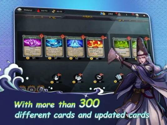 Four distinctive classes - the Monk, Samurai, Onmyoji, and Ninja, each with their exclusive set of decks. With more than 300 different cards, you will be able to build your own deck based on the class you have chosen to challenge those bizarre monsters from Japanese folklore.