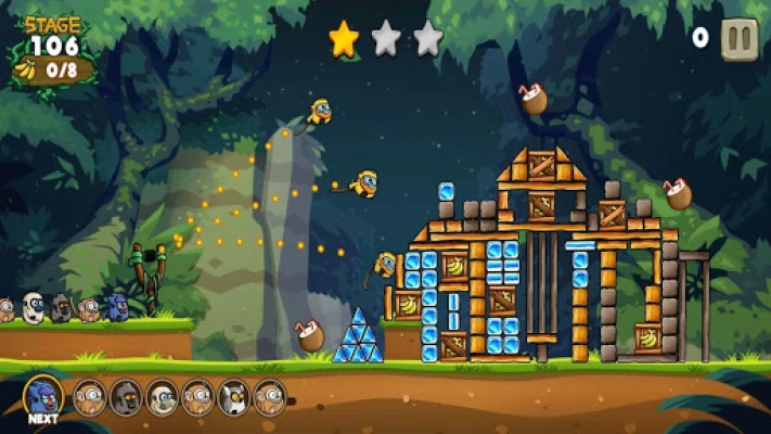 Shoot monkey to destroy construction and get bananas to acquire scores.