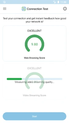 In the “Connection Test” section, you can test your own network experience and get instant feedback how well your network performs for web browsing and video streaming. You can also see how well your network performed during the last week based on measurements from your device in the “My Network Quality” section.