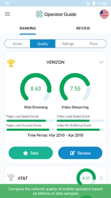 Information about the network quality of the mobile operators based on billions of network quality data samples are visualized in an easy-to-understand manner. This data comes from both app measurements from the CellRebel app as well as from 3rd party data from CellRebel’s partners.