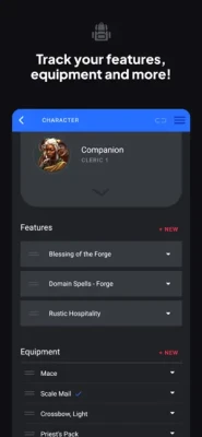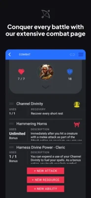 Take combat to the next level with our intuitive combat page, designed to streamline every encounter. Stay connected with your party by syncing character statuses over Wi-Fi, ensuring teamwork is always at your fingertips. Need to customize on the fly? Our quick-add page makes searching for items, features, and updates fast and easy.